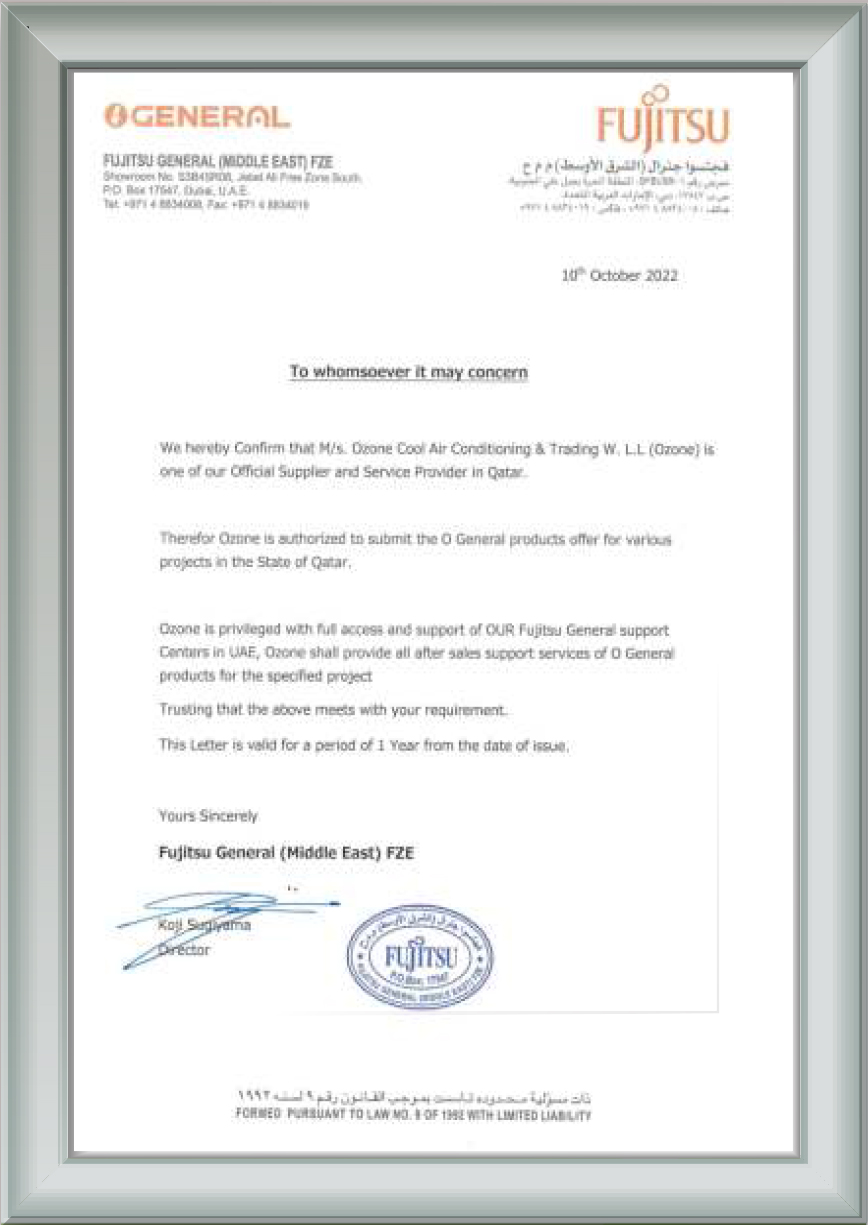 Ozone cool has been operating since 2008 in India and United Arab Emirates (UAE) and since 2019 and 2024 have expanded operations into the Qatar and the Kingdom of Saudi Arabia (KSA) respectively. With the support of our manufacturing partners and the aid of cutting edge technology we have evolved into a one stop shop for all HVAC solutions. As part of this, we are having association with one of the leading Air conditioners manufacturer Fujitsu General (O General ) Japan & with leading valve Manufacturer AVK. They are based in Denmark. We are their Authorized distributor for the Qatar market.Our expertise range from chilled water systems, VRF, Fresh air Solutions, Evaporator cooling solution, DX system etc. Ozone has successfully completed and delivered multiple projects for residential, palaces, mega villas, commercial and industrial. As a company that offers maintenance contracts for air-conditioning installation, we have the technical and financial capability to take on large HVAC projects of any size. We look forward to the opportunity of working with you on any current or future projects.